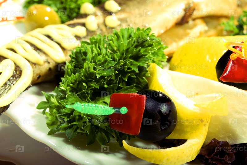 Фаршированная запеченная рыба с лимоном и салатом