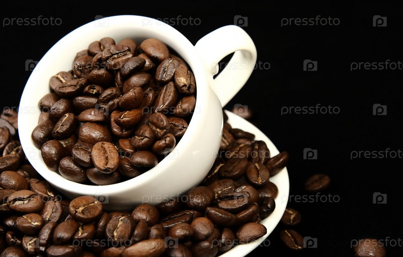 Белая кружка, наполненная кофейными зернами