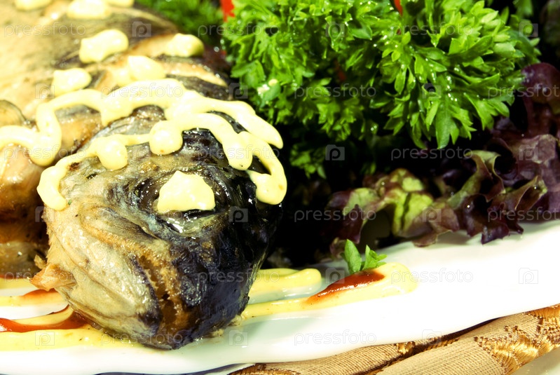 Фаршированная запеченная рыба с салатом