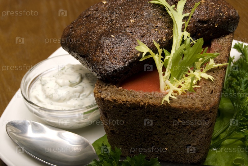 Красный суп в буханке черного хлеба