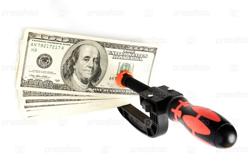 Доллары США и пластиковый зажим на белом фоне