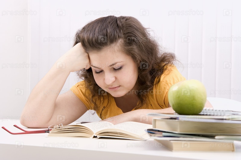 Девушка делает домашнее задание