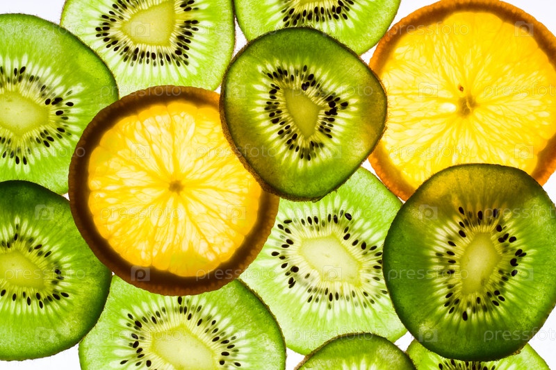 Нарезанные киви и апельсины фоном