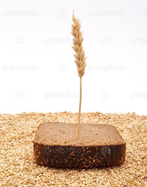 Ломтик хлеба с пшеницей на белом фоне