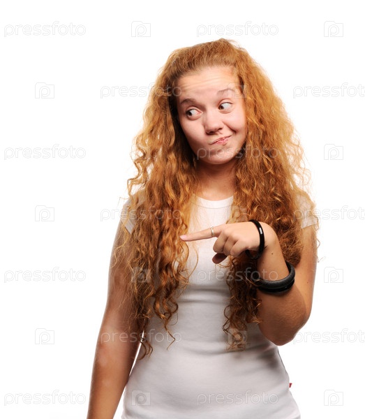 Молодая рыжеволосая девушка на белом фоне