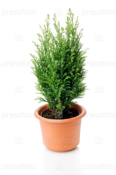 Молодое растение кипариса на белом фоне
