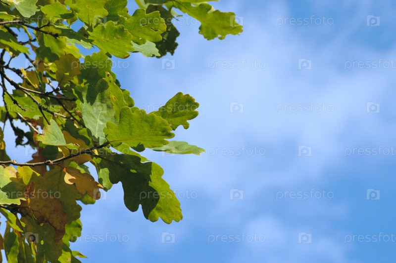 Дубовые листья на фоне неба