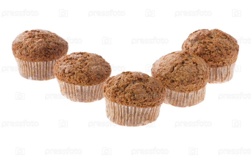 Пять кексов на белом плане