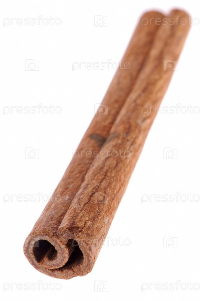 Палочка корицы, изолированная на белом фоне, крупным планом