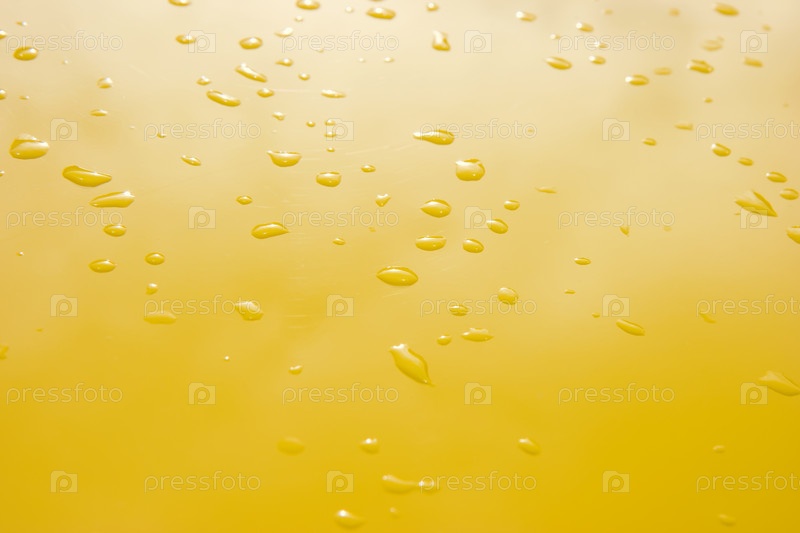 Капли дождя на поверхности окрашенного в желтый цвет металла