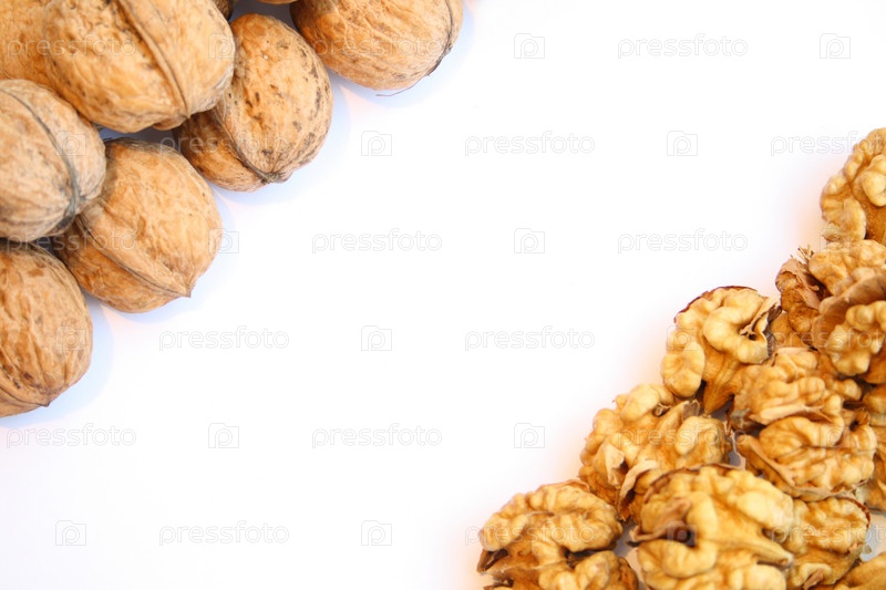 Грецкие орехи на белом фоне
