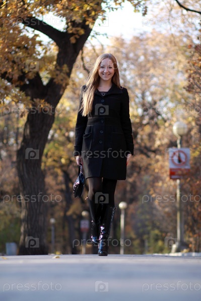 Красивая девушка идет по осенней аллее