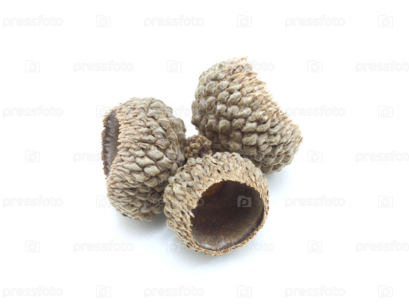 Коричневые желуди на белом фоне