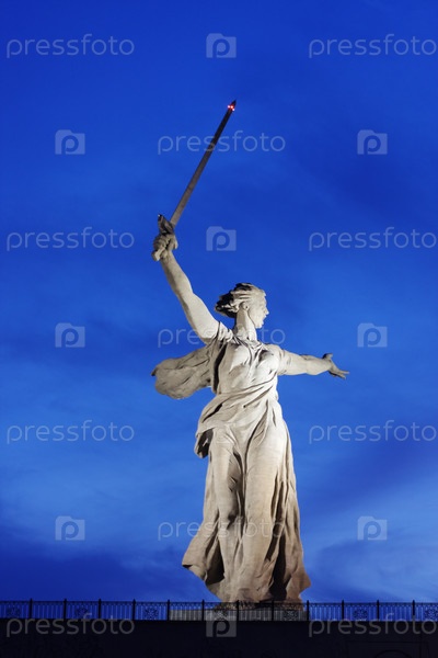 Памятник "Родина-мать" ночью, Мамаев курган, город Волгоград