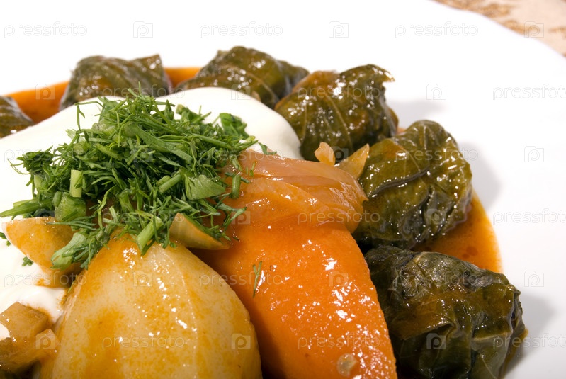 Восточное блюдо из фаршированных овощей с соусом