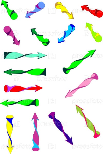 Коллекция изображений различных разноцветных стрелок. Изоляция на белом фоне
