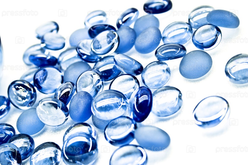 Голубые стеклянные шары на белом фоне
