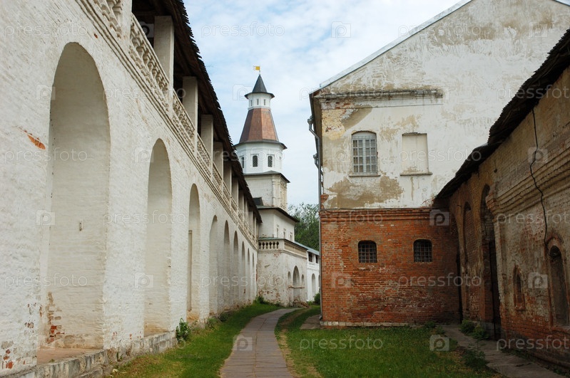 Узкая пешеходная дорожка одна каменная стена в монастыре Нового Иерусалима
