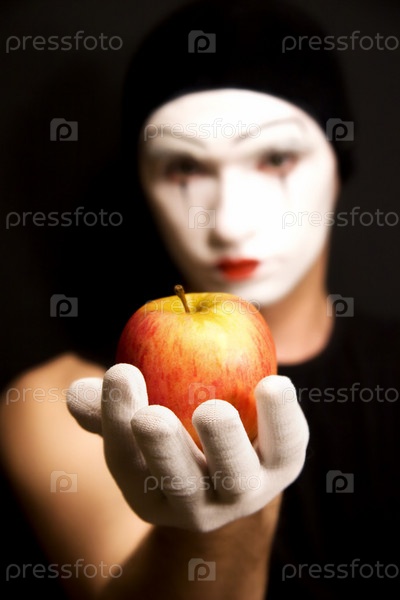 Портрет мима с яблоком