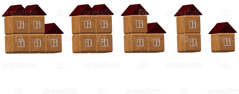 Несколько изображений домов, составленных из одинаковых секций.Изоляция на белом фоне. 3d