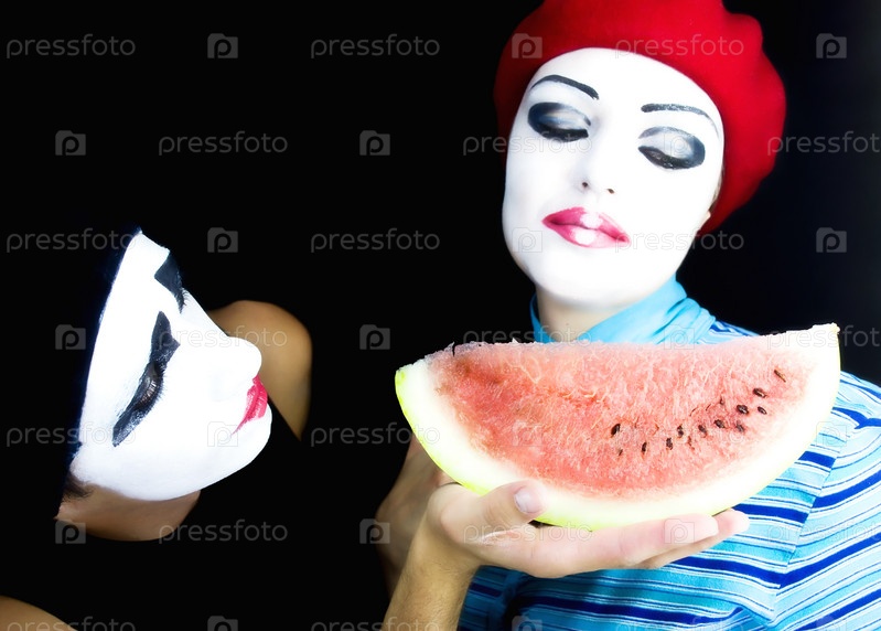 Мим, кормящий арбузом