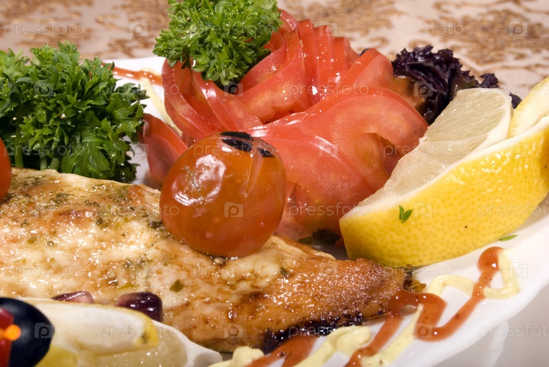 Жареное рыбное филе с лимоном и овощами