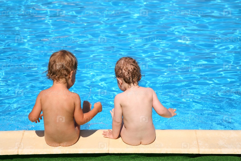 Два ребенка сидят у бассейна