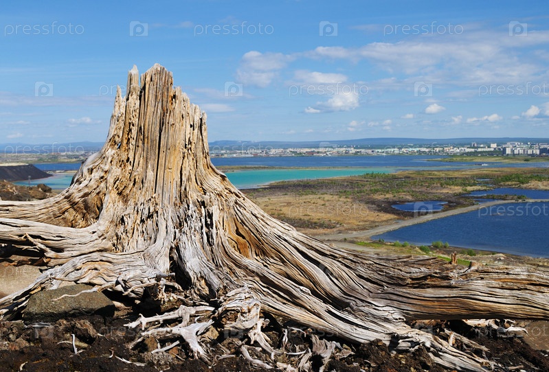 Мертвые деревья рядом с металлургическими заводами. Последствия неблагоприятных экологических условий