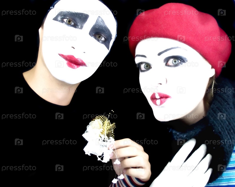Портрет двух мимов на черном фоне