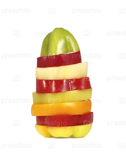 Перец, нарезанный ломтиками на белом фоне
