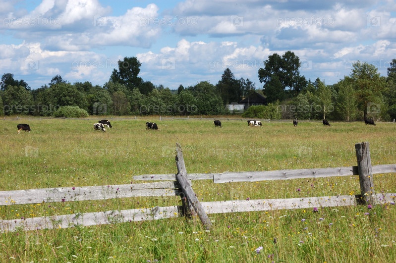Коровы пасутся на лугу