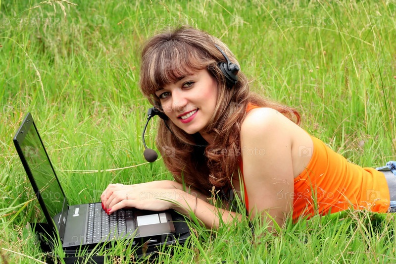 Девушка с ноутбуком в наушниках