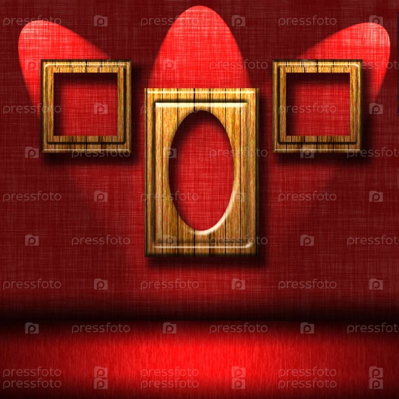 Красная комната с рамами на стене