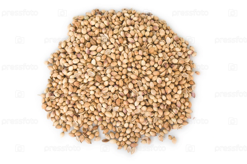Некоторые сушеные семена кориандра на белом фоне