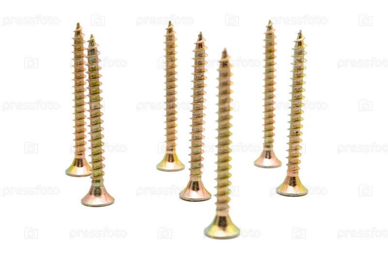 Некоторые медные винты на белом фоне