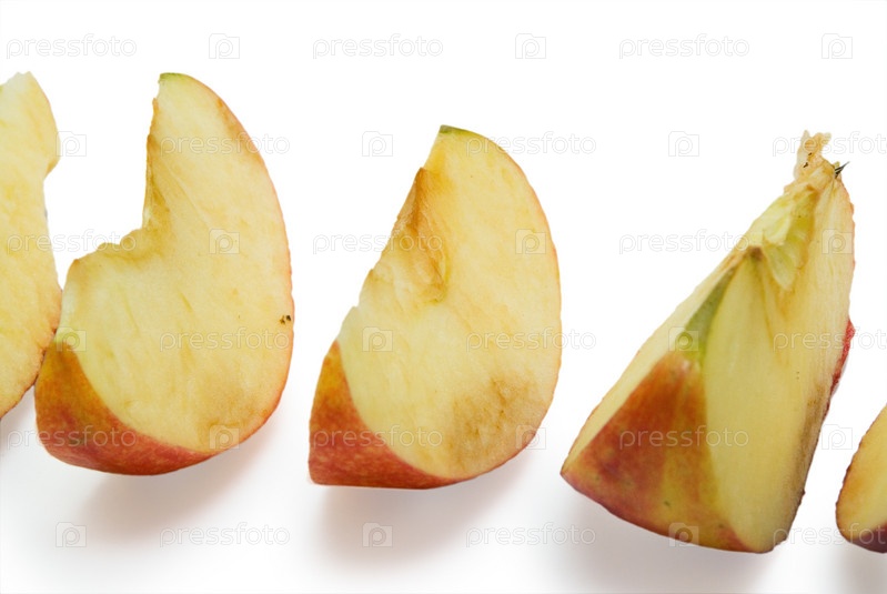 Порезанное яблоко на белом фоне