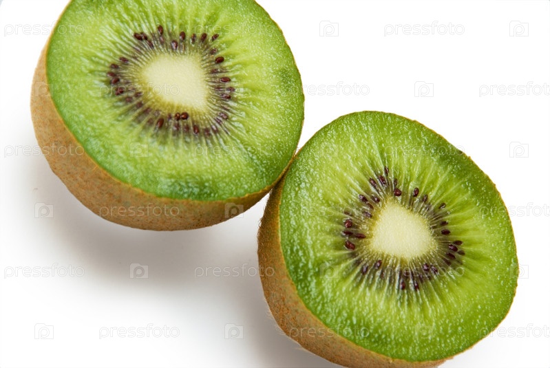 Разрезанный пополам киви на белом фоне