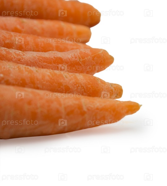 Свежая морковь крупным планом на белом фоне