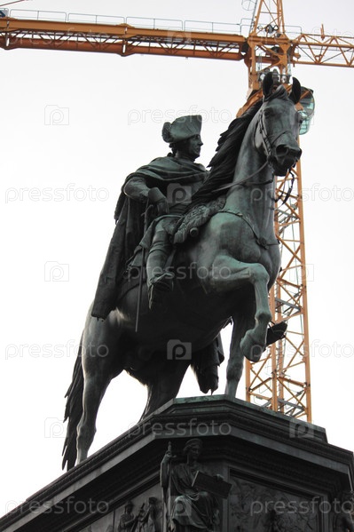 Памятник на фоне строительного крана