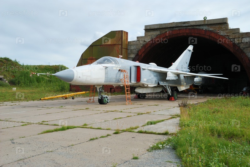 Российский самолет перед военным ангаром