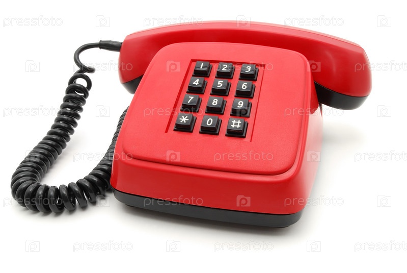 Красный телефон с черными кнопками на белом фоне