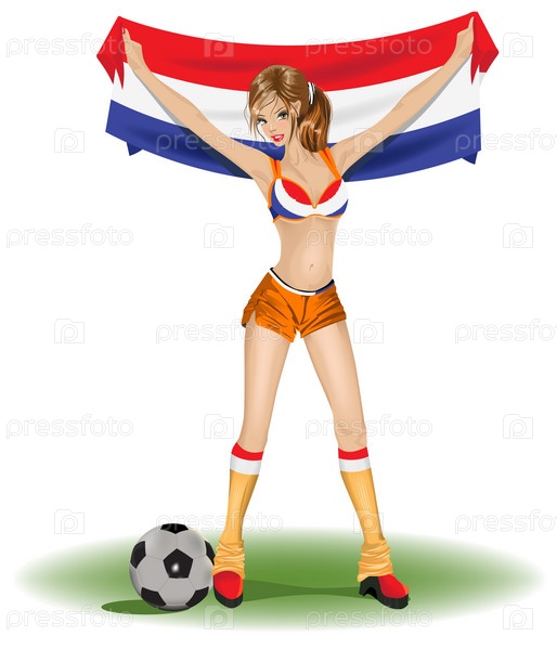 Футбольная болельщица с флагом Франции в руках