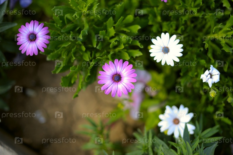 Фиолетовые и белые цветы крупным планом
