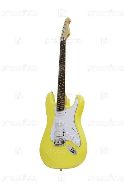 Желтая электрогитара на белом фоне