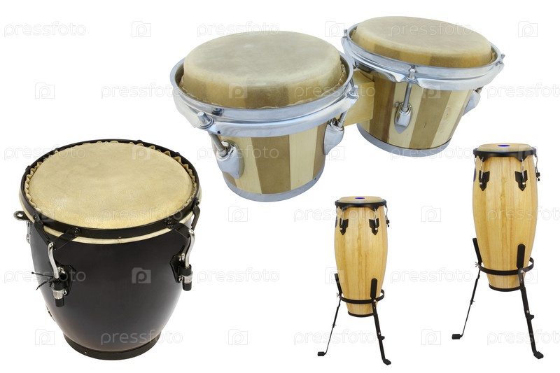 Набор этнических барабанов на белом фоне