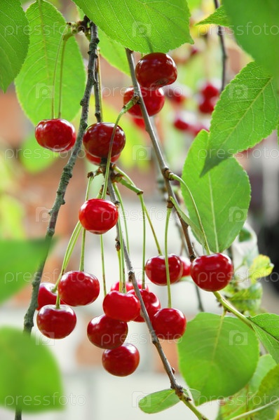 Сладкие и сочные вишни на дереве