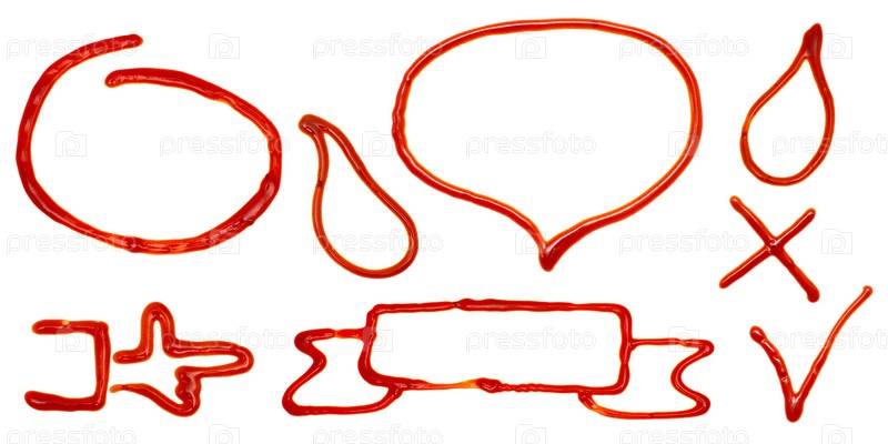 Различные символы и знаки нарисованы кетчупом на белом фоне