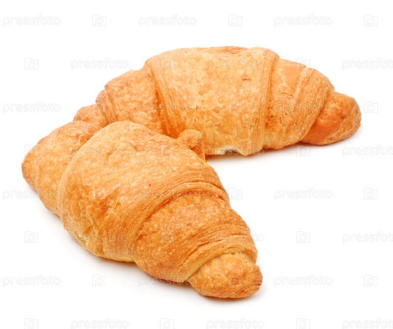 Два свежих круассана на белом фоне