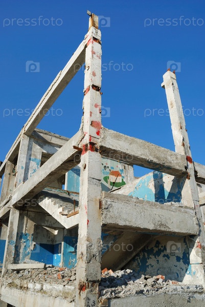 Здание разрушилось на фоне темно-синего неба
