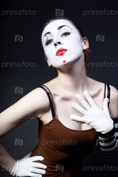 Женщина-мим на черном фоне